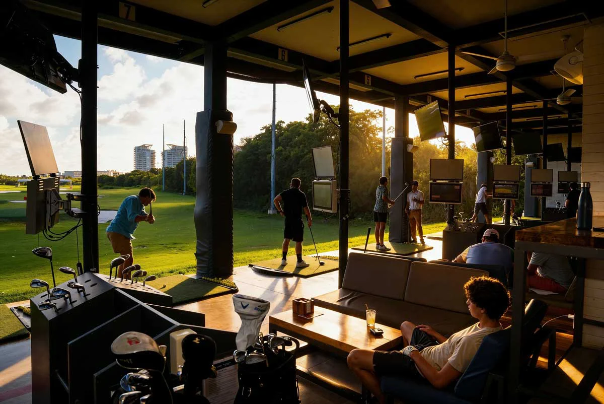 Un formato único para teambuilding y entretenimiento ejecutivo. Bahías privadas, competencias en grupo y la experiencia de un driving range profesional frente al Caribe. Disponible para reserva exclusiva.